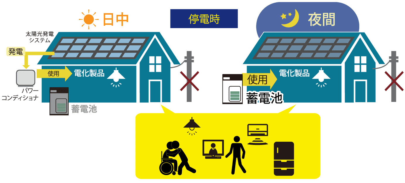 太陽光+蓄電池があれば、停電が長く続いても最低限の生活は維持できます。
