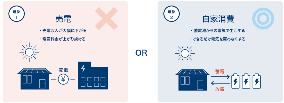 ▼図解:売電と自家消費の違い